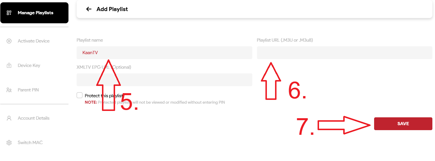 6. Name it (e.g., KaanTV) and paste your M3U URL (.m3u or .m3u8).