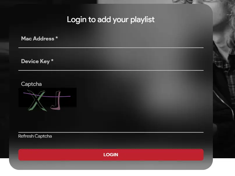 3. In UPLOAD M3U / URL enter your MAC, complete the captcha, click Add List.